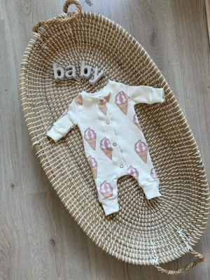 een boxpakje waarvan de drukknoopjes speels doorlopen naar een beentje ideaal met het verschone..